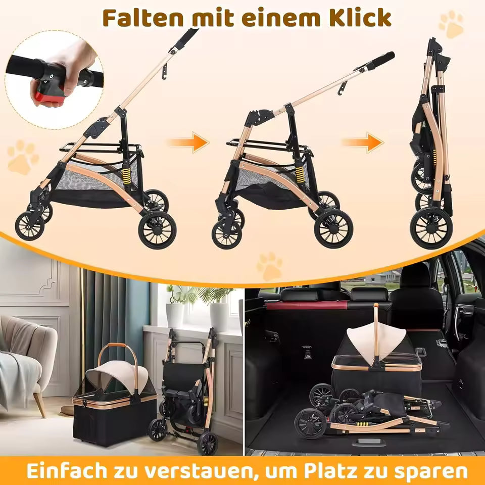 2-in-1 Pet Cart – Collapsible Dog & Cat Stroller with 360° Durable Rubber Wheels and Storage Basket