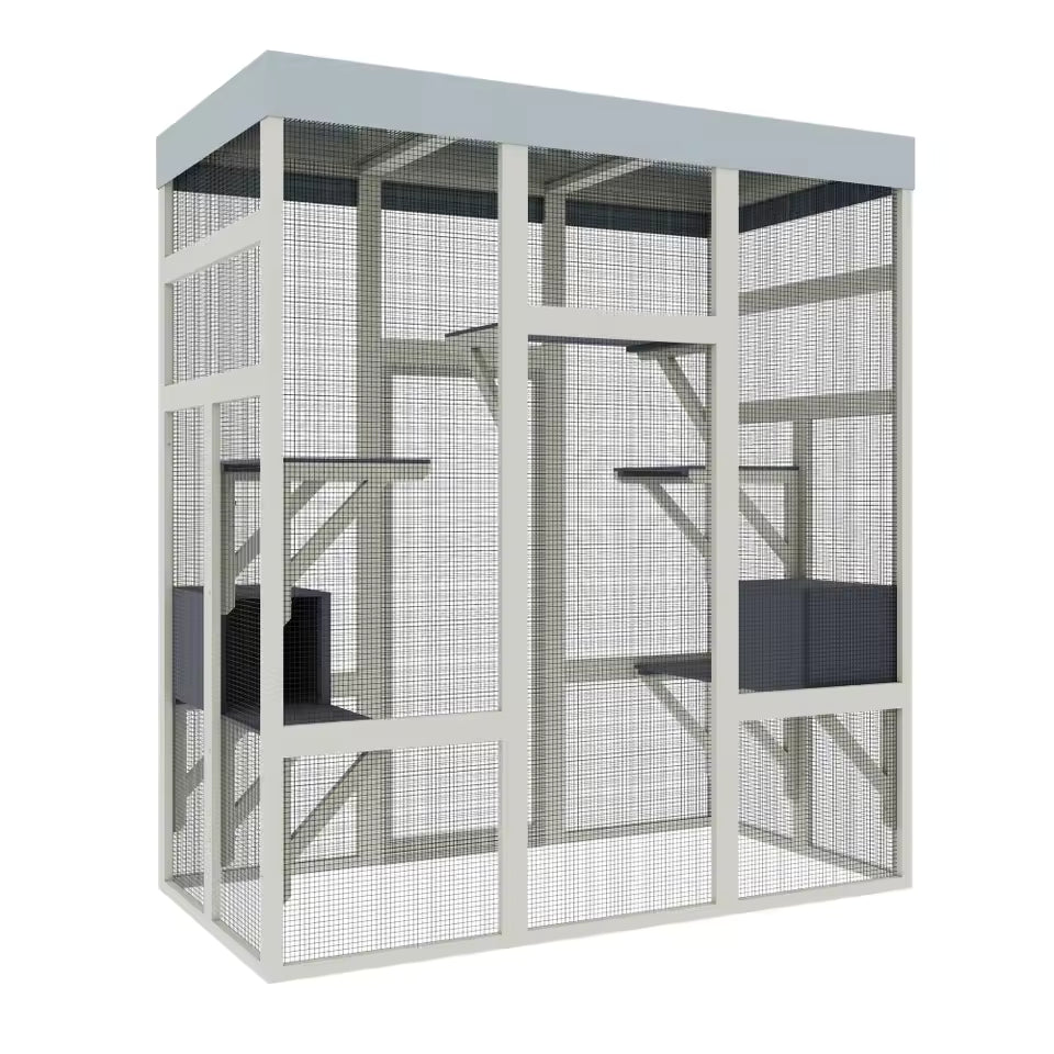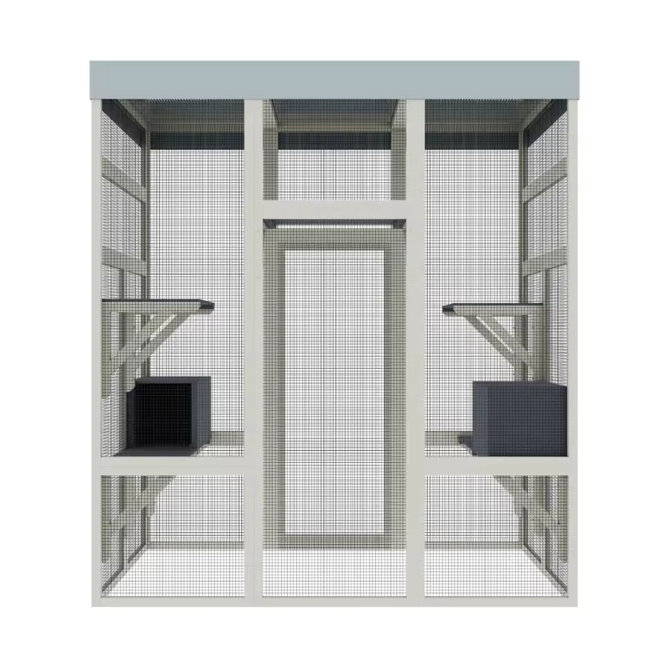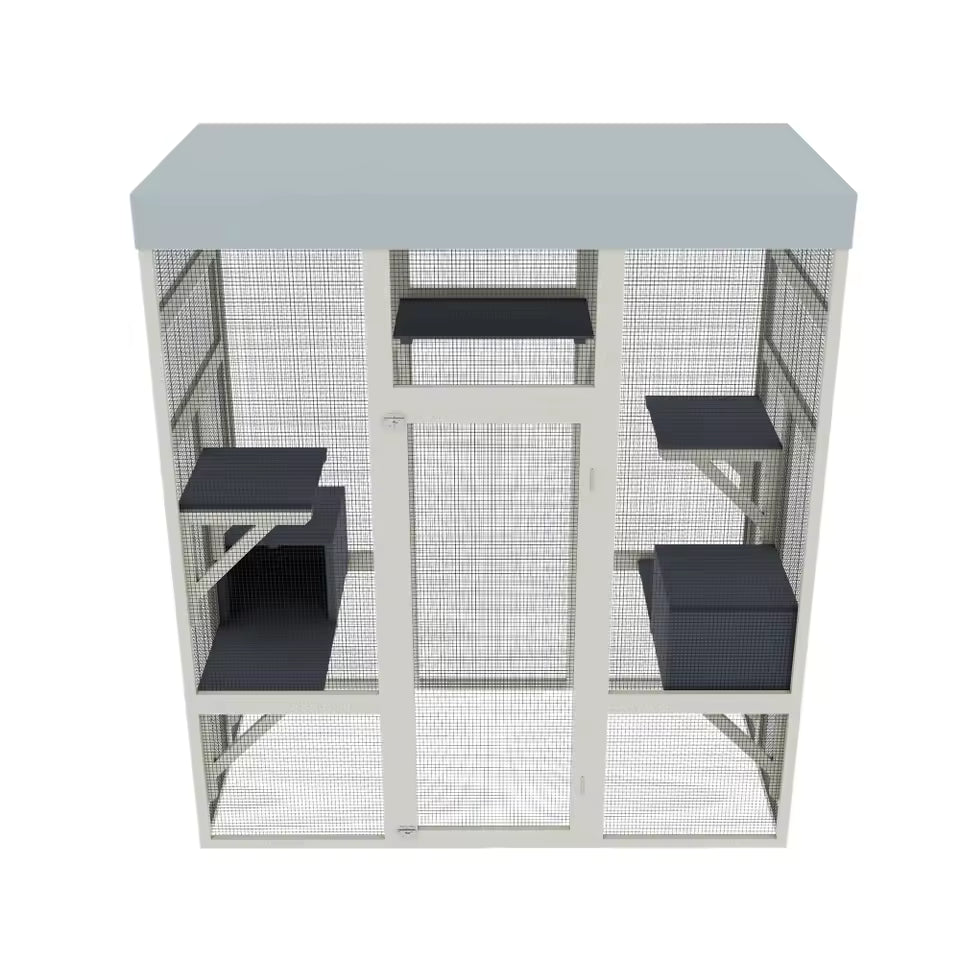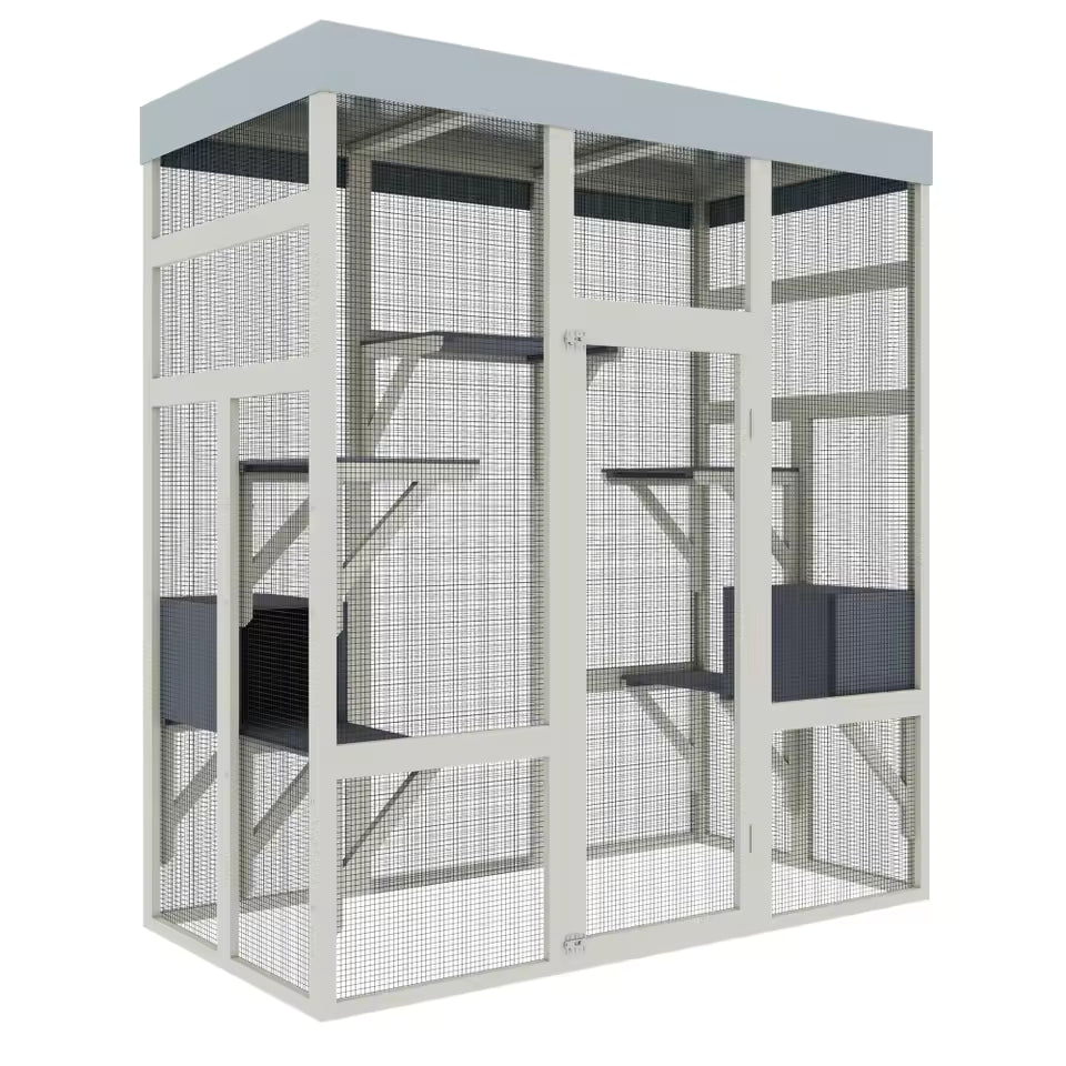 "62.6'' Gray Wooden Outdoor Catio with Weatherproof Roof – Spacious & Secure Pet Enclosure for Cats and Small Animals, Black Rust Finish"