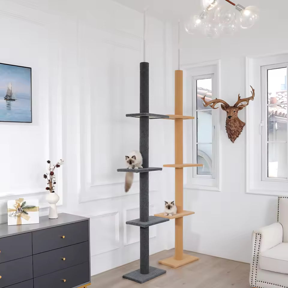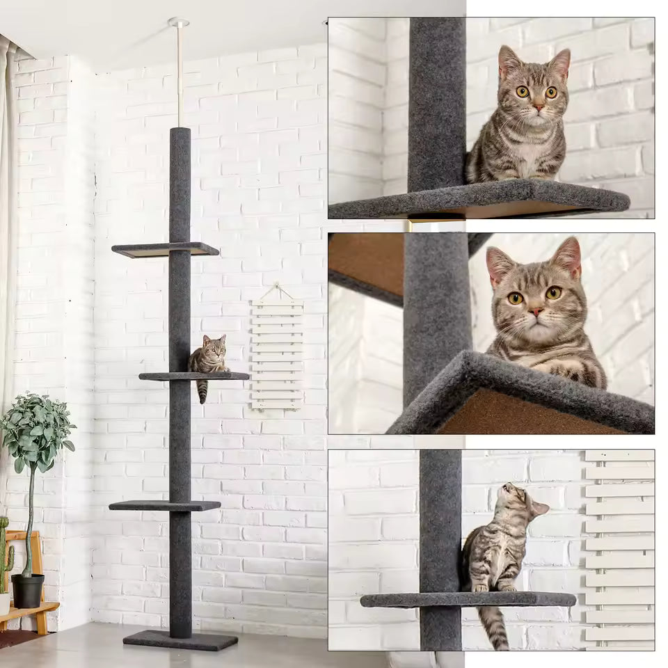 Adjustable Height Cat Tree for Indoors, Floor-to-Ceiling Cat Tower with Scratching Posts, Cat Scratching Furniture, Kitten Play Toys