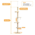4. The cat tree has a sturdy base at the bottom and a connecting tie bar at the top that connects to the ceiling, which helps increase the stability of this cat tree. It's more stable and secure when your cat crawls, jumps, and scratches.