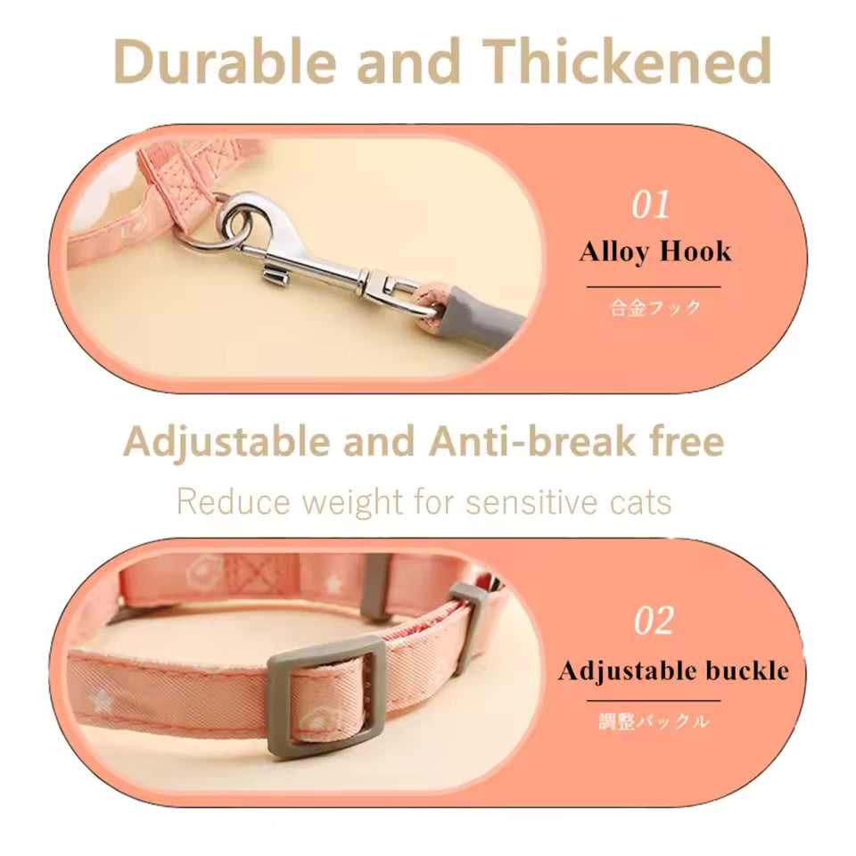Adorable Angel Wing Cat Harness & 120cm Leash β Waterproof Vest-Style Chest Strap for Cats and Small Dogs β Outdoor Pet Walking Set