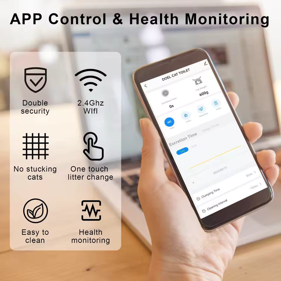 Equipped with infrared, weight, and smart sensors, the device tracks your cat’s litter box usage—including visit frequency, duration, and weight—delivering real-time data to your smartphone via the connected app.