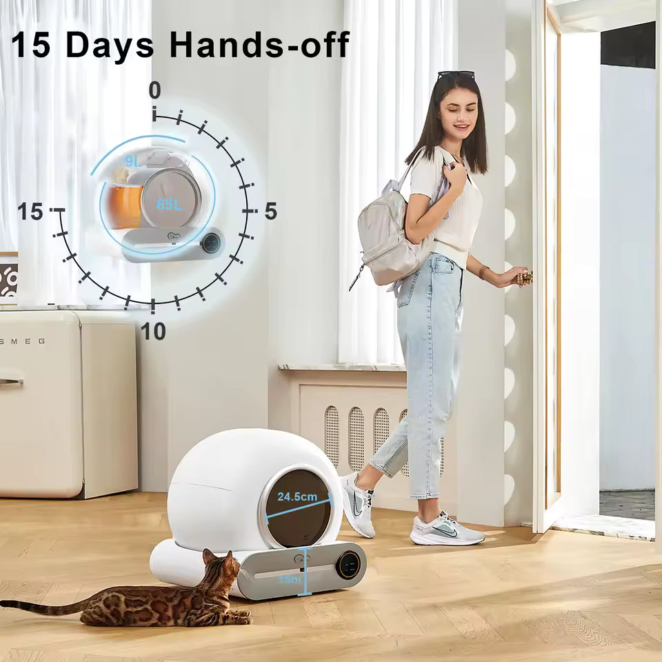 This upgraded automatic litter box integrates the litter chamber and waste compartment into a single unit, eliminating the need for traditional drawers. Its enclosed system ensures safe operation without risking your cat getting trapped inside.
