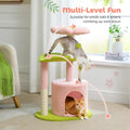 Blossom-Themed Cat Tree for Indoor Use – Compact Climbing Tower with Sisal-Wrapped Scratch Post, Cozy Hideaway, Plush Lounging Platforms, Fuzzy Dangling Toys, and Interactive Accessories