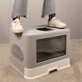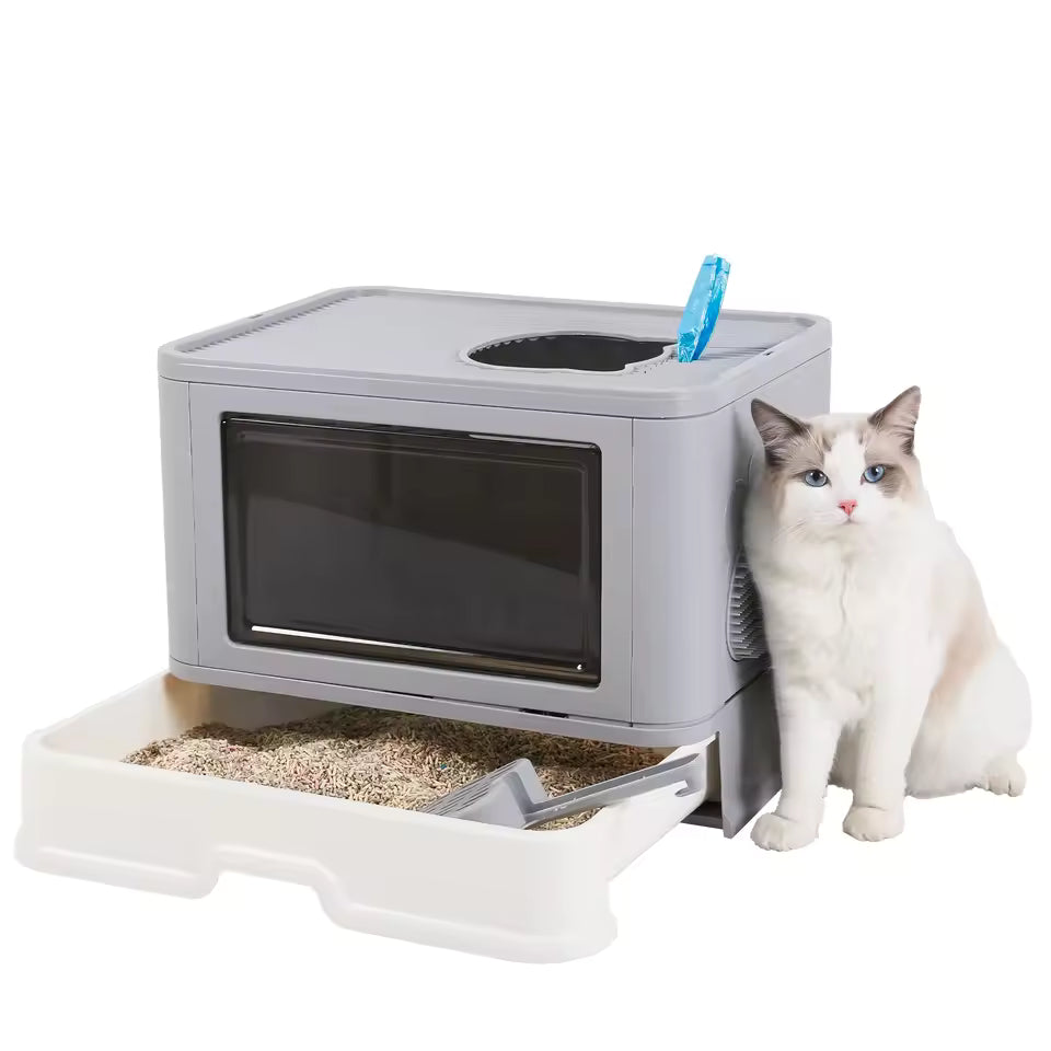 Collapsible Enclosed Cat Litter Box – Front Entry & Top Exit Kitty Toilet with Massage Grate and Scoop