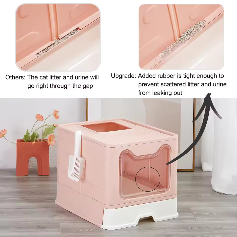 Collapsible Litter Pan with Lid, Enclosed Litter Pan, Top Entry Splash-Proof Cat Toilet, Easy to Clean, with Litter Scoop