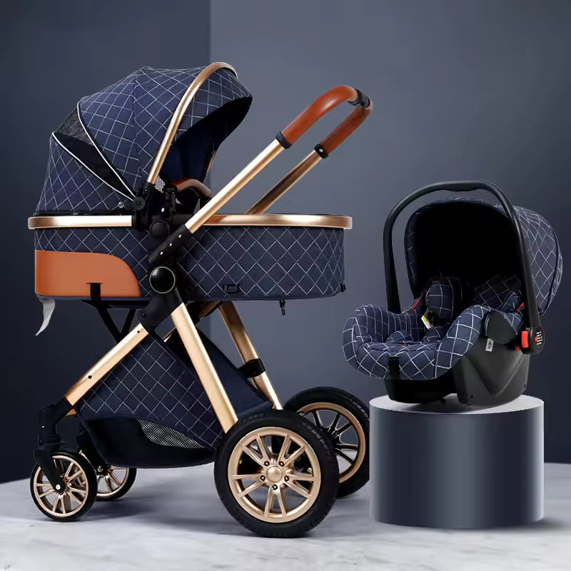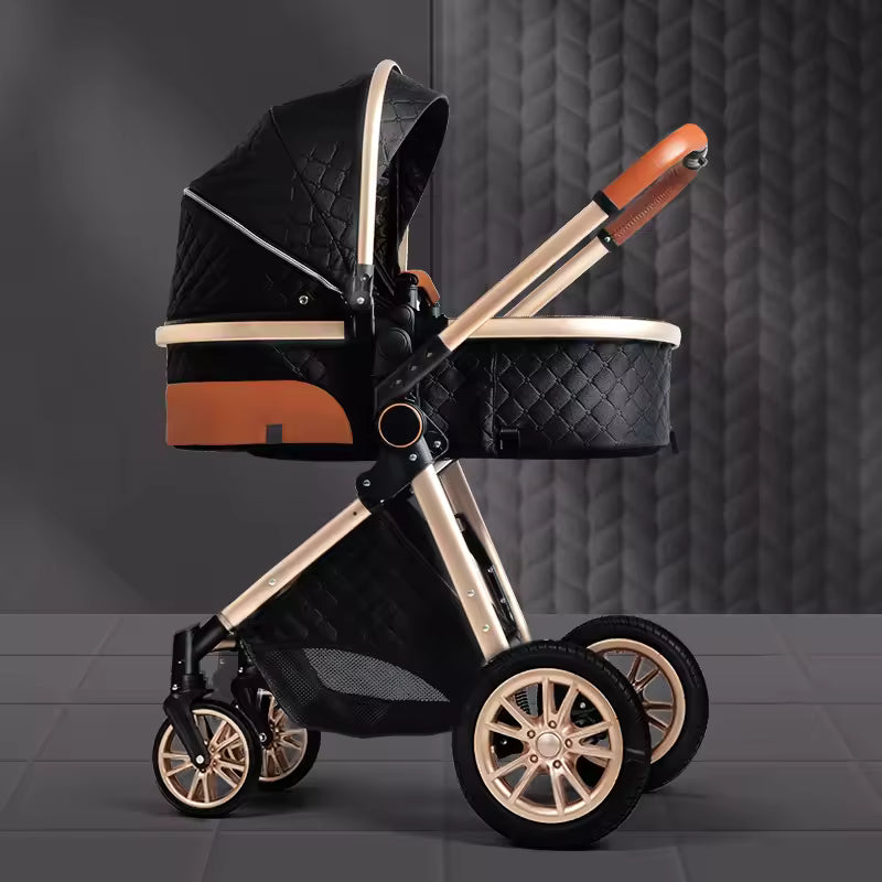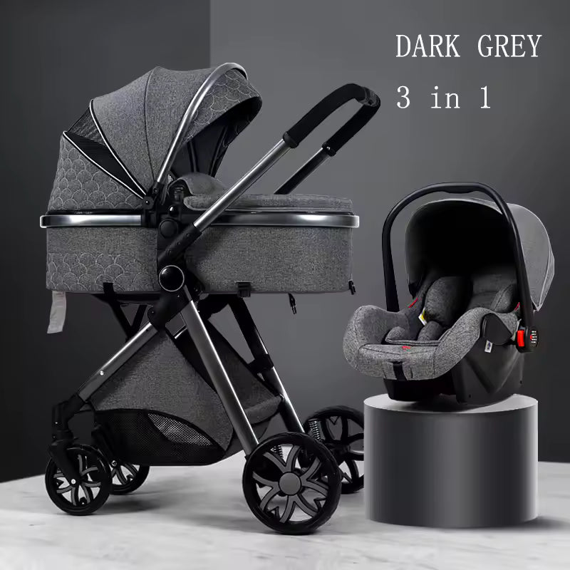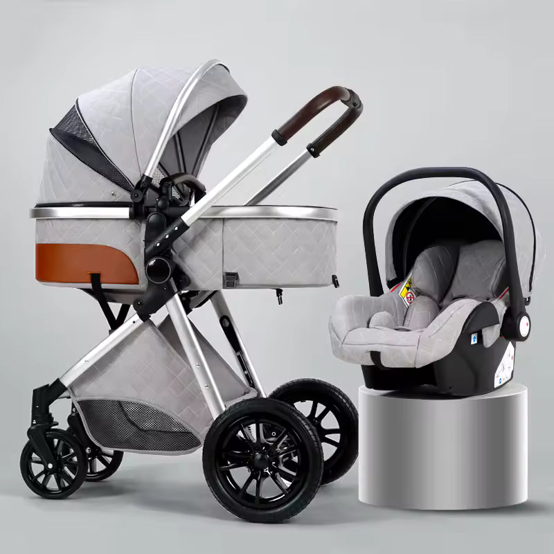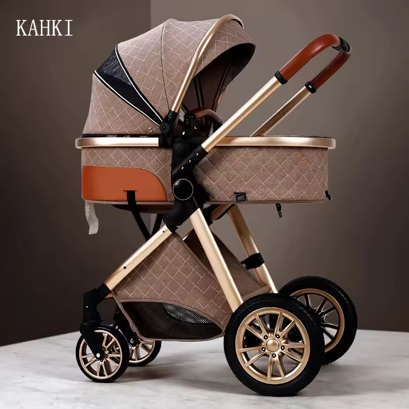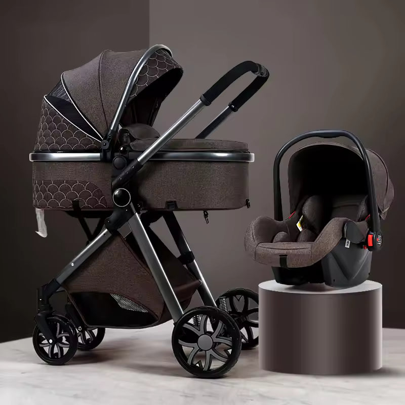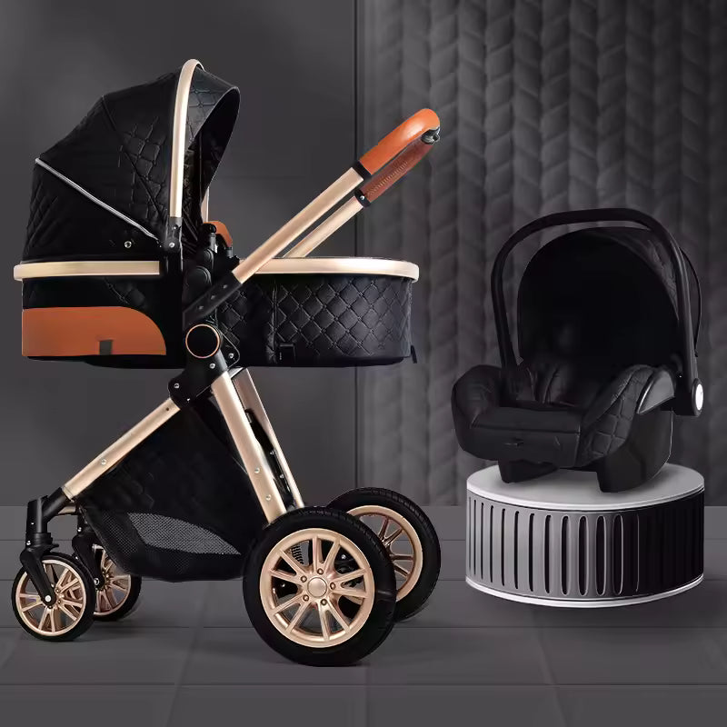 Deluxe Infant Stroller 3-in-1 Elevated Design Baby Carriage – Convertible Seat and Recliner, Lightweight Portable Pram, Infant Carrier Cradle