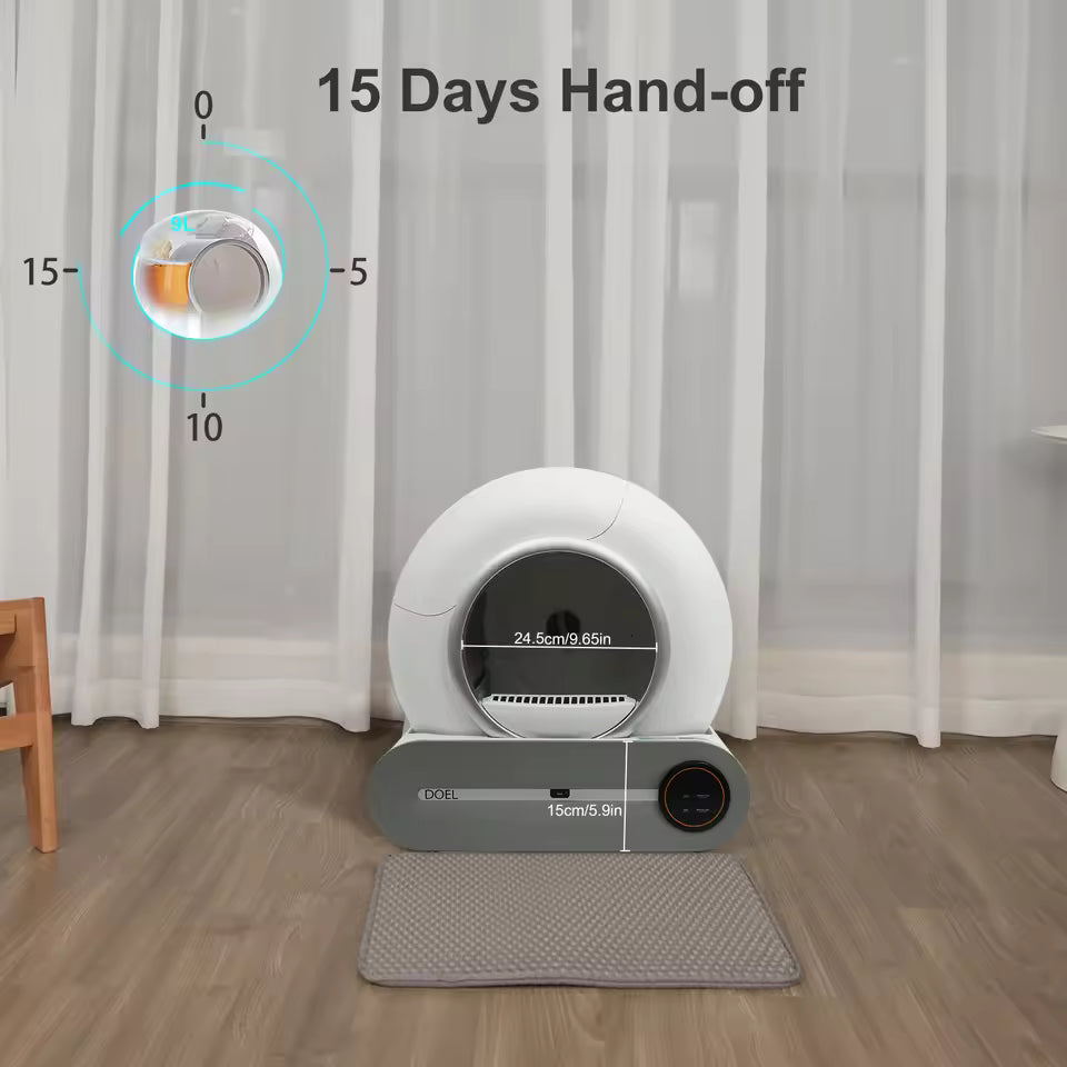 DOEL Self Cleaning Cat Litter Box 65L Automatic Cat Litter Box w/ Trash Bag & Litter Mat Smart Cat Toilet App Control 2.4G WiFi
