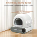 With a total capacity of 65L—split between the toilet and waste compartments—this litter box offers a roomy interior while occupying just 4.24 cubic feet. It comfortably accommodates cats from 3.5 to 17 lbs, and the waste compartment can support a 12 lb cat for up to a week—perfect for travel peace of mind.