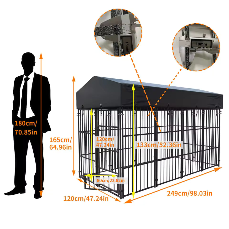 Rugged & All-Weather Resistant – Crafted from thick, high-strength metal tubing with a 3.5mm wire gauge, this kennel is chew-proof, rust-resistant, corrosion-resistant, and fade-resistant. The surface is treated with a powder coat and sulphur finish to withstand harsh outdoor environments year-round.
