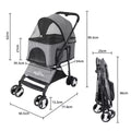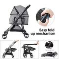 Foldable Pet Stroller – 4-Wheel Travel Carrier Cart for Dogs & Cats, Pushchair Jogger Pram with Rain Cover, Portable Pet Buggy
