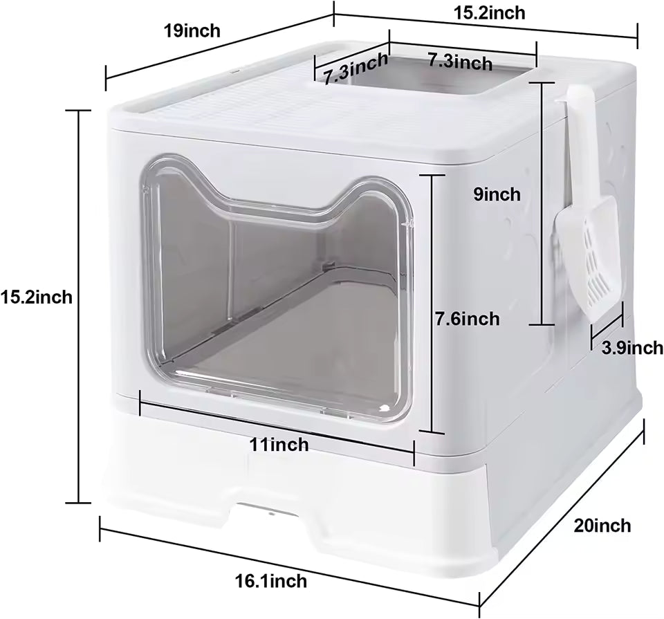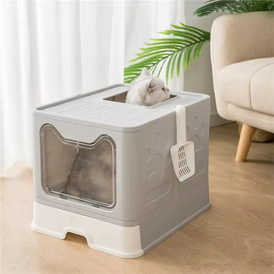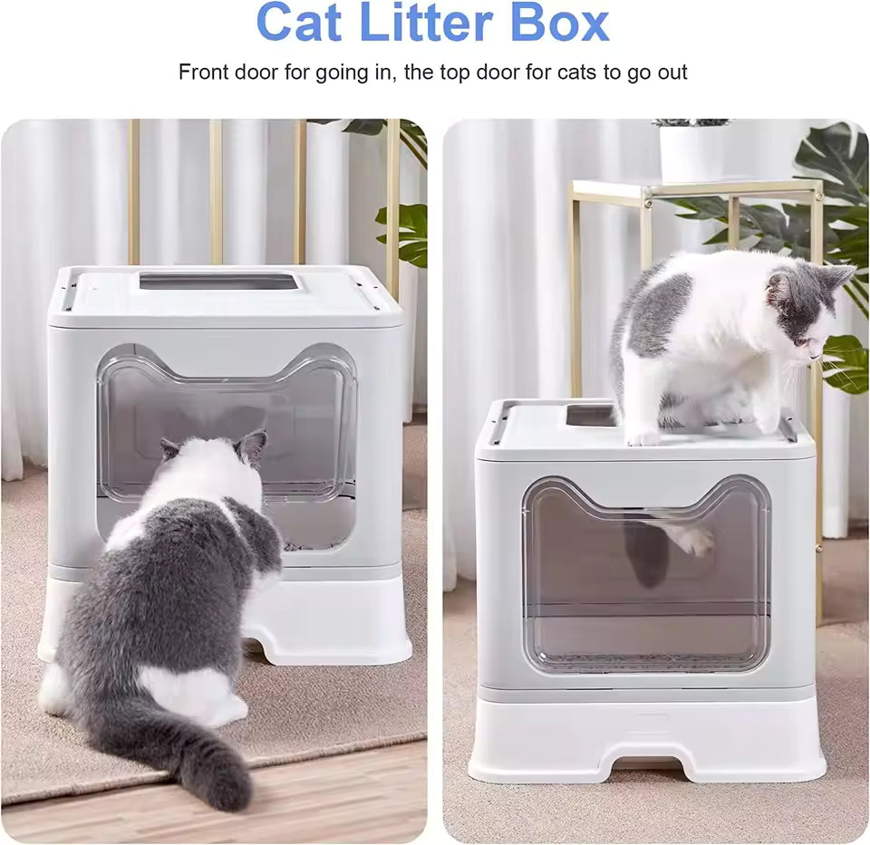 Front-Access & Top-Exit Foldable Cat Litter Box with Scoop and Pull-Out Drawer – Covered Extra-Large Kitty Toilet for Pets