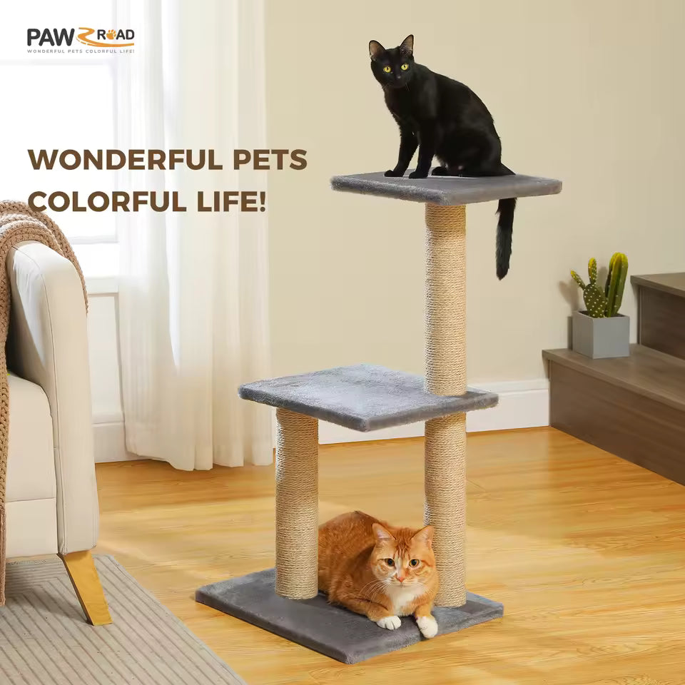 Cat Tree & Tower for Indoor Cats – 2 Styles Activity Center with Sisal Scratching Posts, Spacious Hammock, and Removable Top Perch – Grey