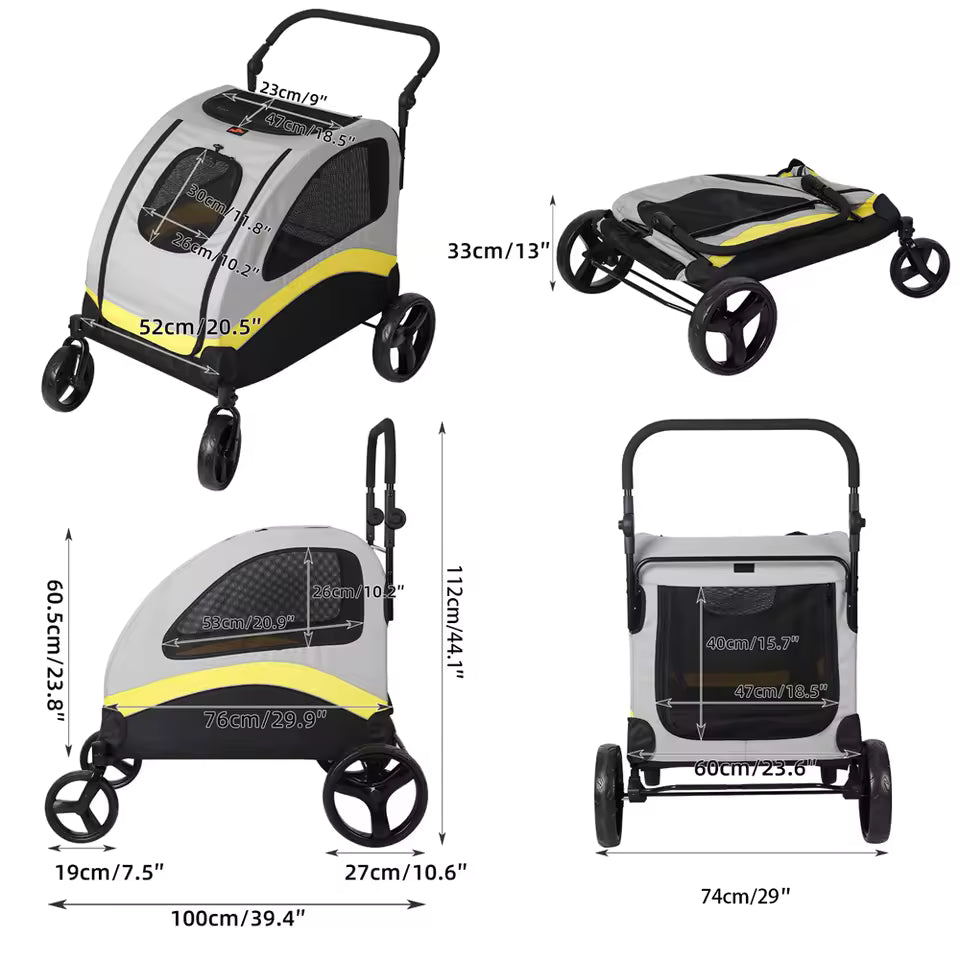 Luxury Pet Buggy – 4-Wheel Collapsible Trolley for Travel, Strolling & Jogging – Suitable for Small, Medium & Large Dogs