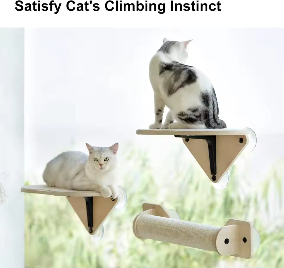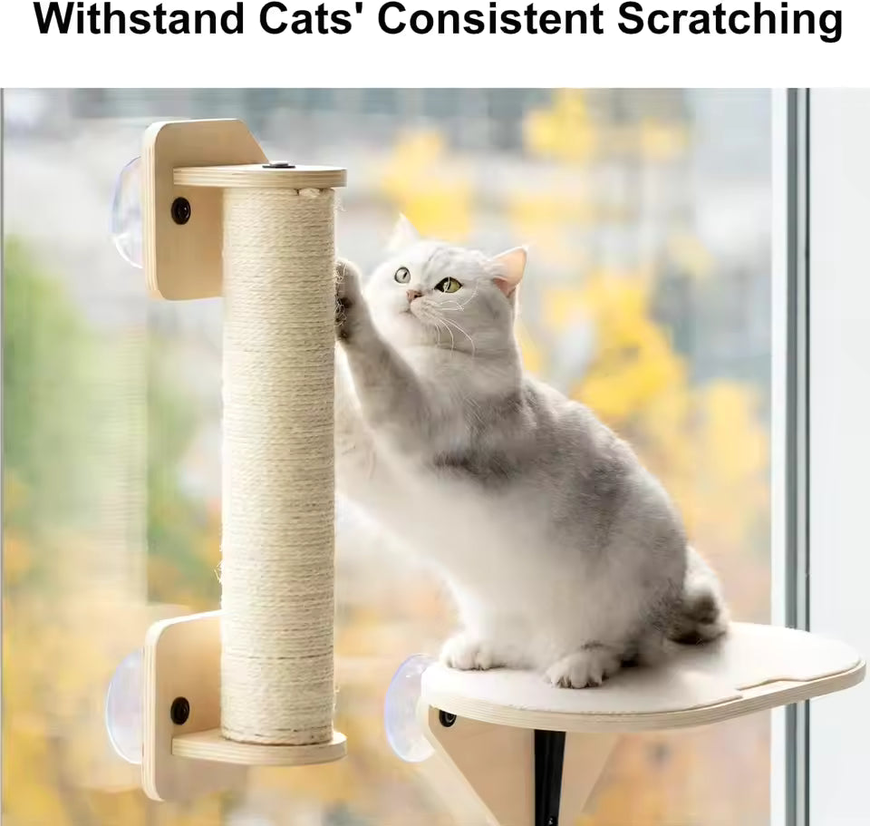 - **Comprehensive Activity Area:** Our set includes a cat window perch, climbing step, and scratching post, catering to cats' natural instincts for jumping, sunbathing, and enjoying views. It provides multiple levels for varied activities.
