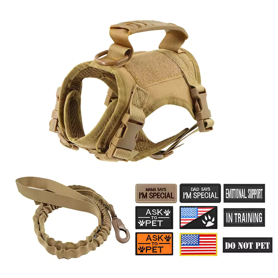 Military-Style Cat Harness and Leash Set with 9 Removable Patches – Adjustable Training Vest with Handle for Small Dogs and Puppies – Pet Gear Accessories