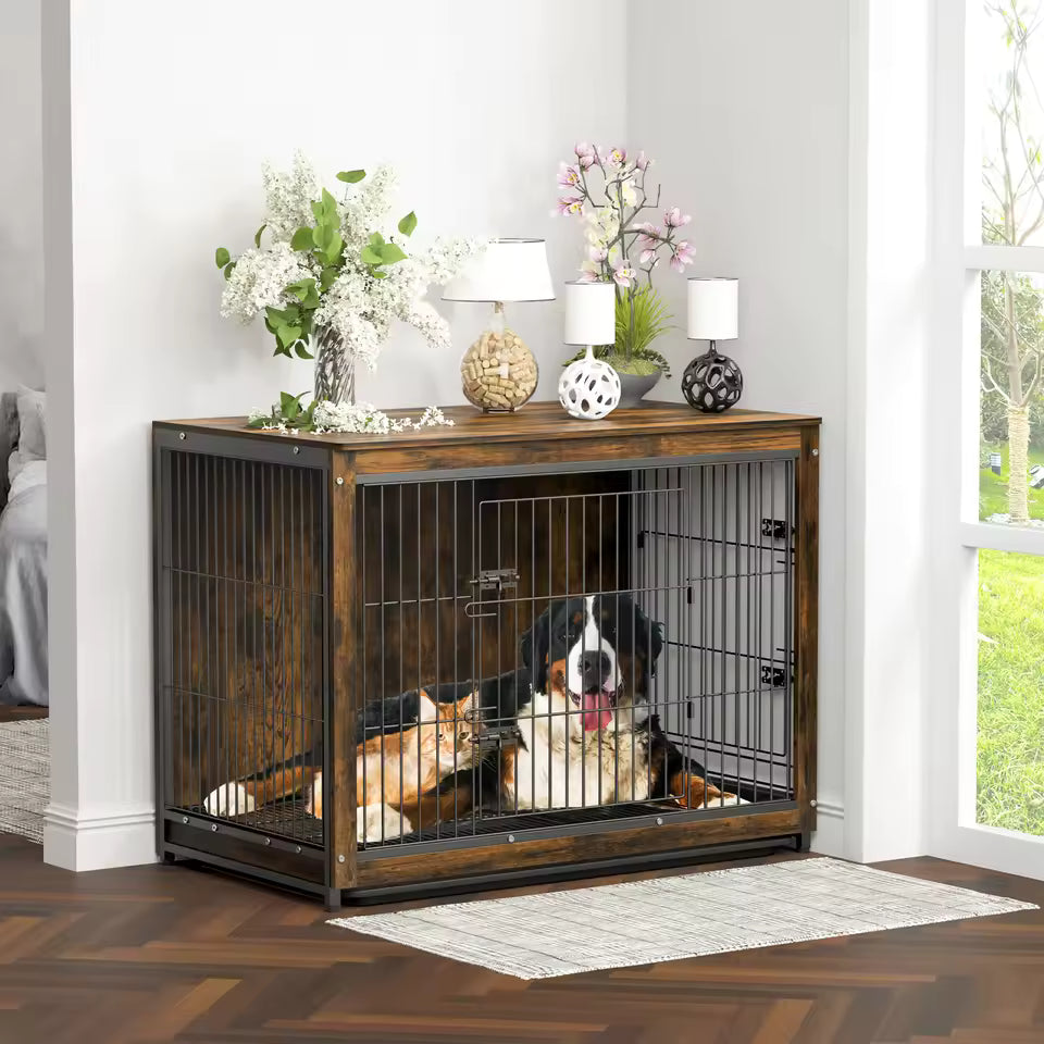 Multi-Use Dog Kennel with Double Doors and Detachable Tray – Wooden & Metal Pet Crate, Furniture-Style End Table, Combined Pet Enclosure, Available in Small, Medium, Large (3 Sizes)