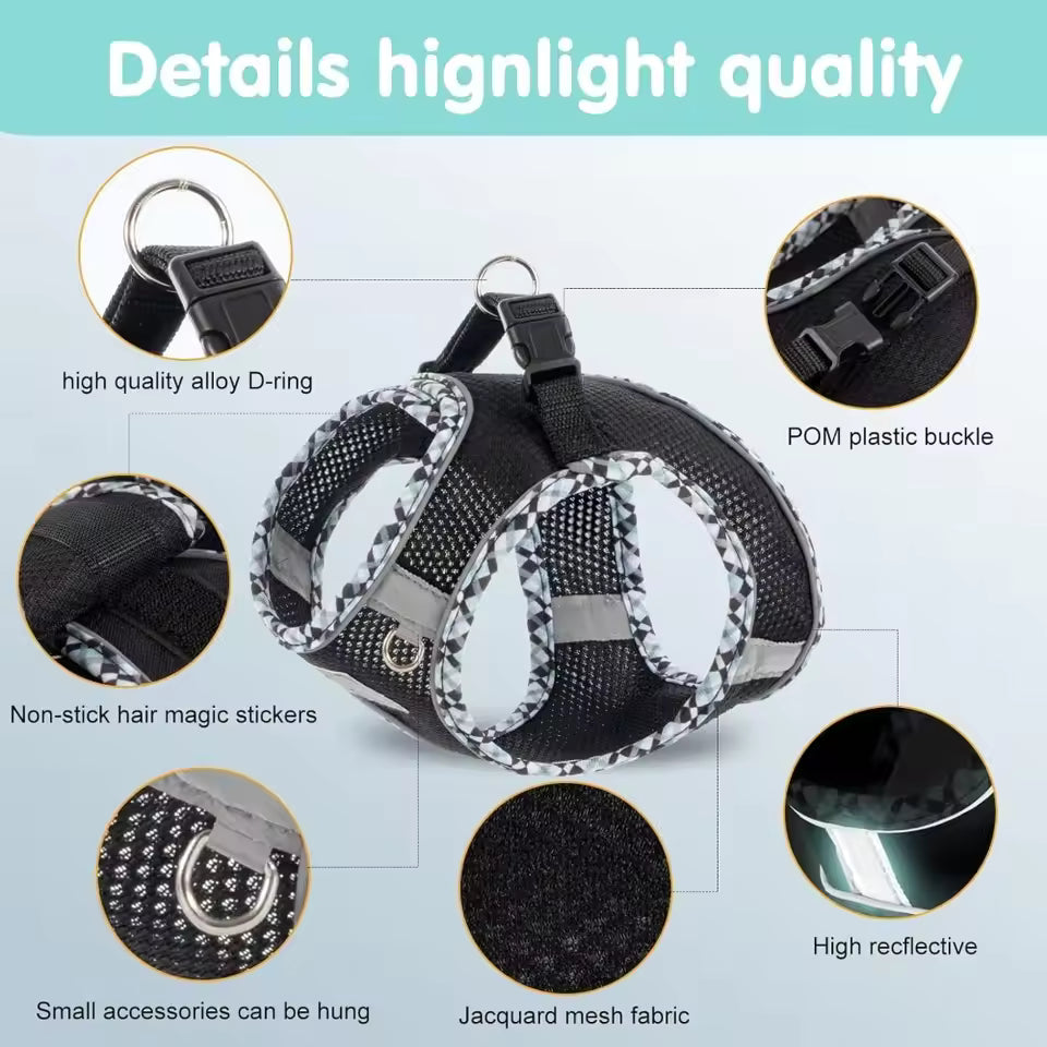 Crafted from high-density jacquard fabric, this dog harness offers a breathable, soft, and cushioned feel for your pet. The material is tear-resistant, chew-proof, and exceptionally durable — built to withstand pulling, stretching, and wear over time. Its moisture-wicking properties help keep your dog cool and dry, delivering a comfortable and dry fit that’s ideal for all-day wear.
