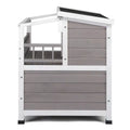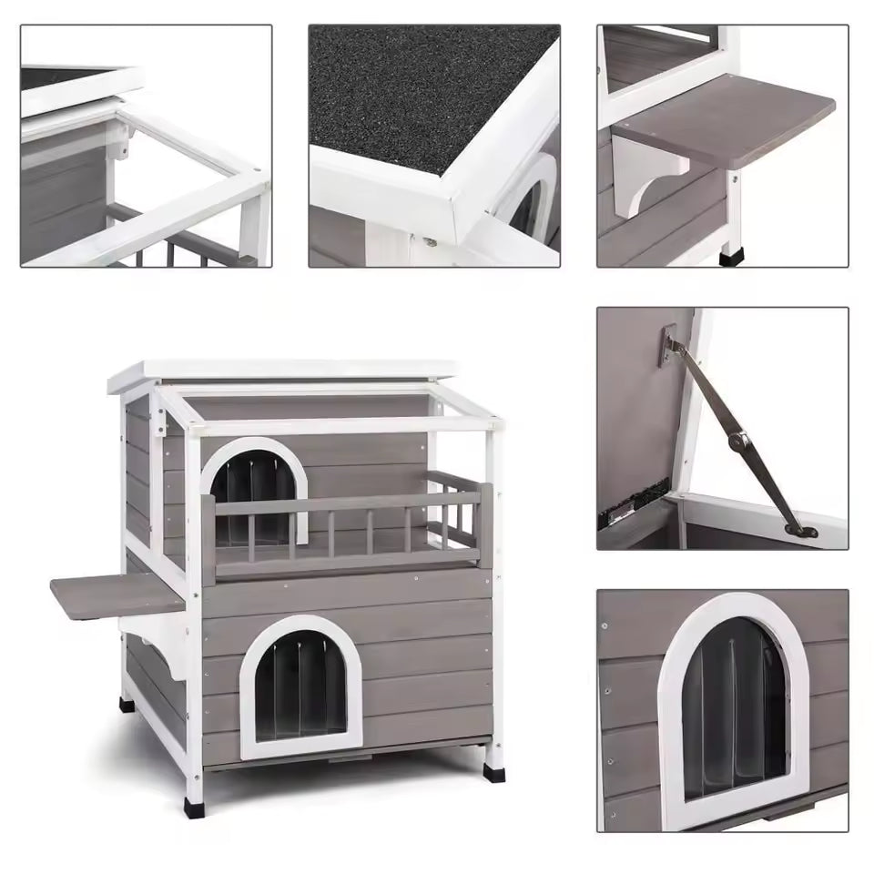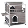 Outdoor Wooden Two-Level Cat House – Pet Shelter with Steps and Balcony for Cats