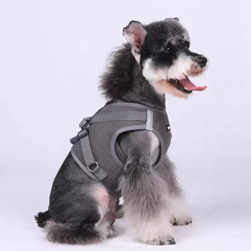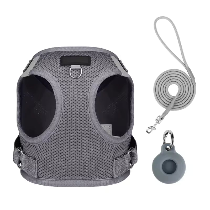 Pet Harness with AirTag Holder & Leash Set – Adjustable Chest Vest for Small to Medium Dogs & Cats – Outdoor Walking Lead Strap