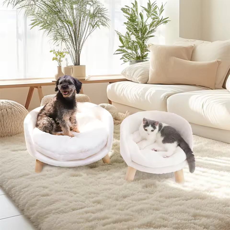 Premium Cat Sofa Cozy Fuzzy Nest Chair with Wooden Legs, Washable Waterproof Cushion Pad for Small Animals