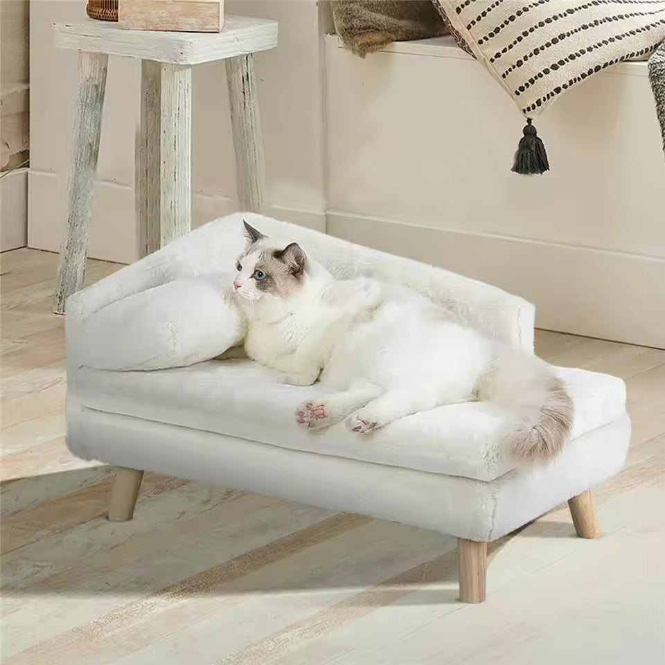 Raised Pet Lounge with Hardwood Legs, Dog and Cat Sofa for Indoor Use, L-Shaped Plush Couch with Cozy Cushion
