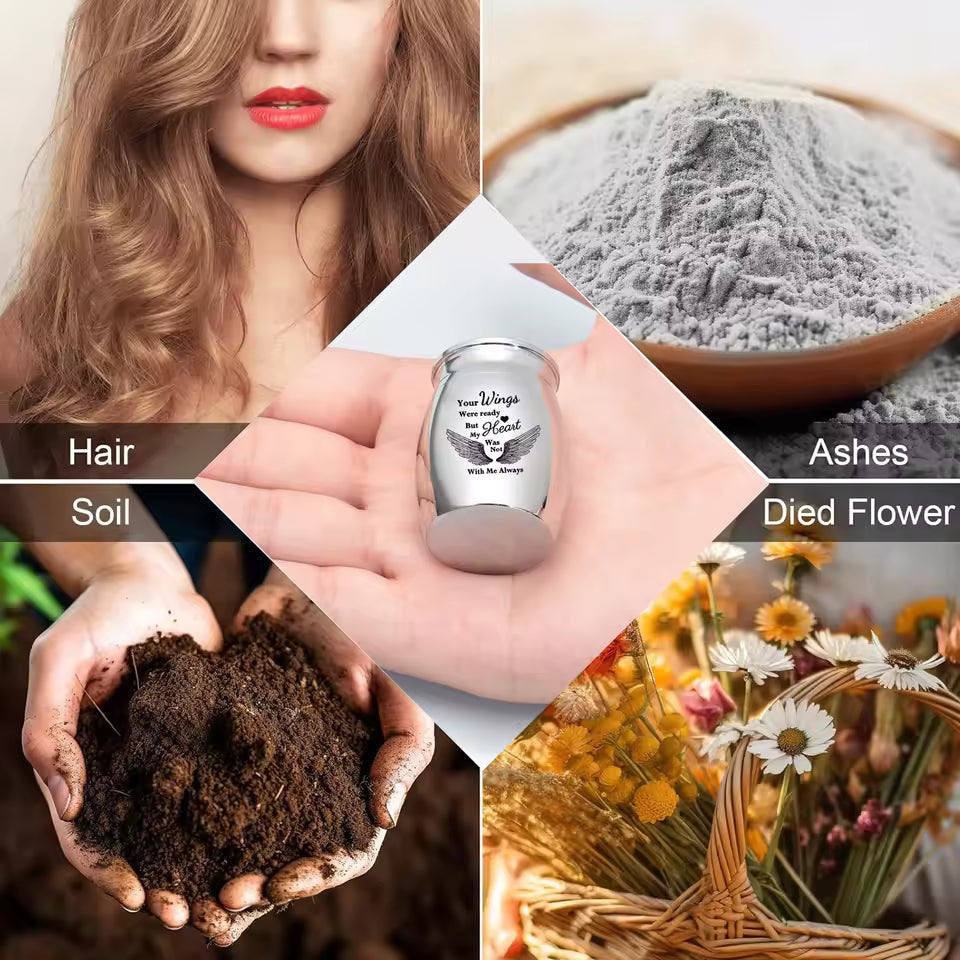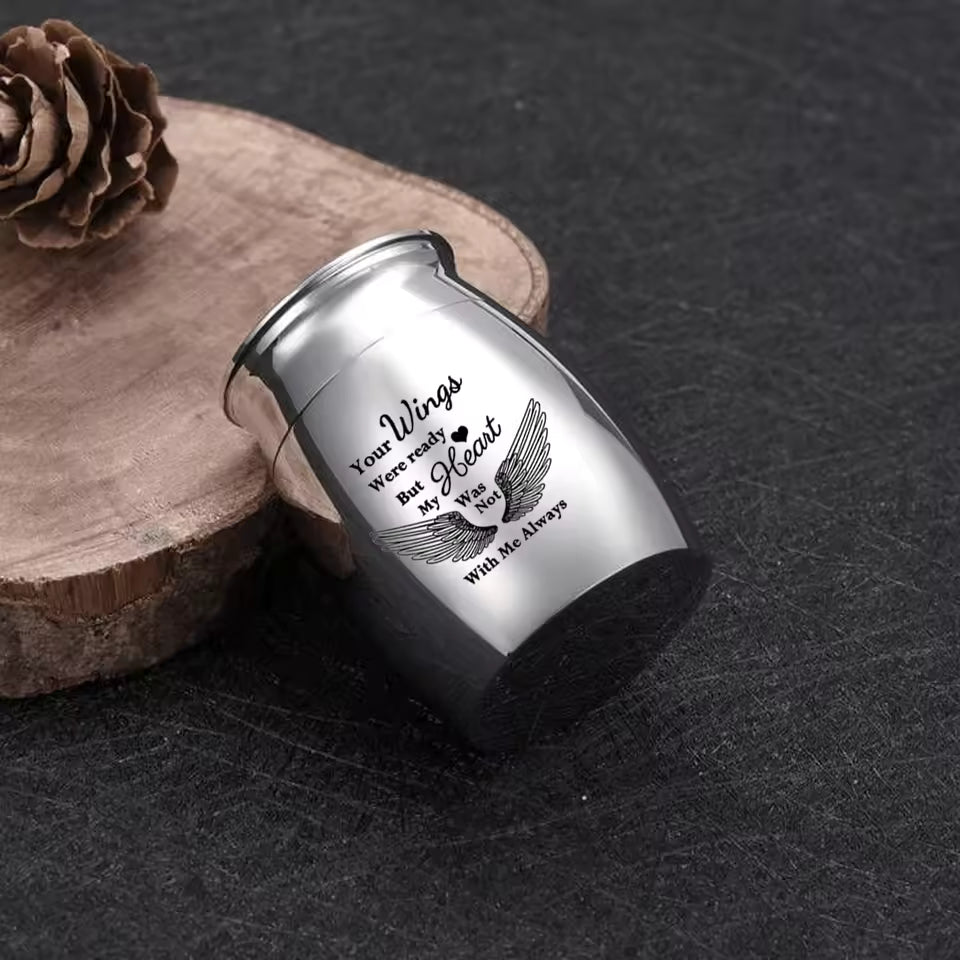 Set of 4 Mini Cremation Urns – 1.57 Inch Small Memorial Ashes Holders for Human or Pet Remains – “Your Wings Were Ready” Keepsake Urns