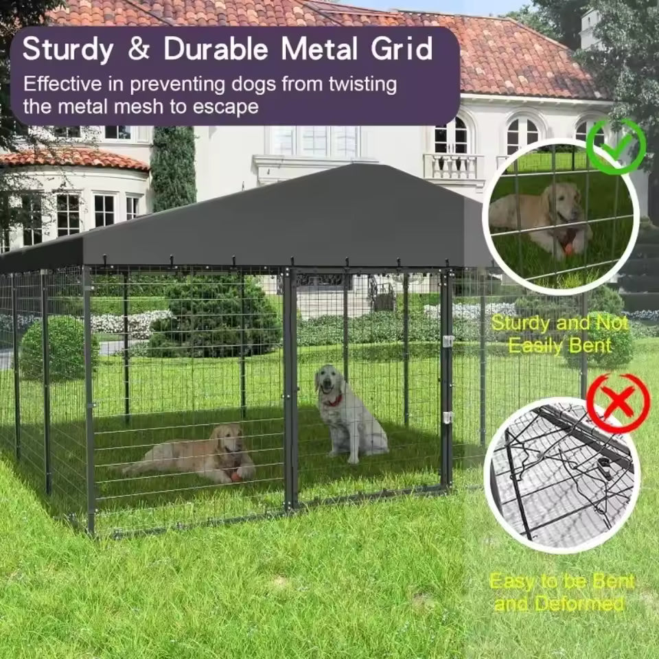 Spacious Outdoor Dog Kennel with Weatherproof Canopy – Heavy-Duty Pet Enclosure Featuring Reinforced Metal Grid and Secure Locking Gate