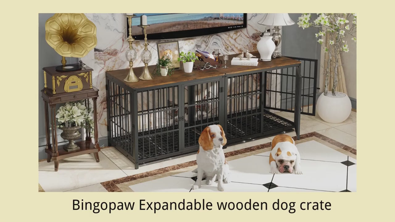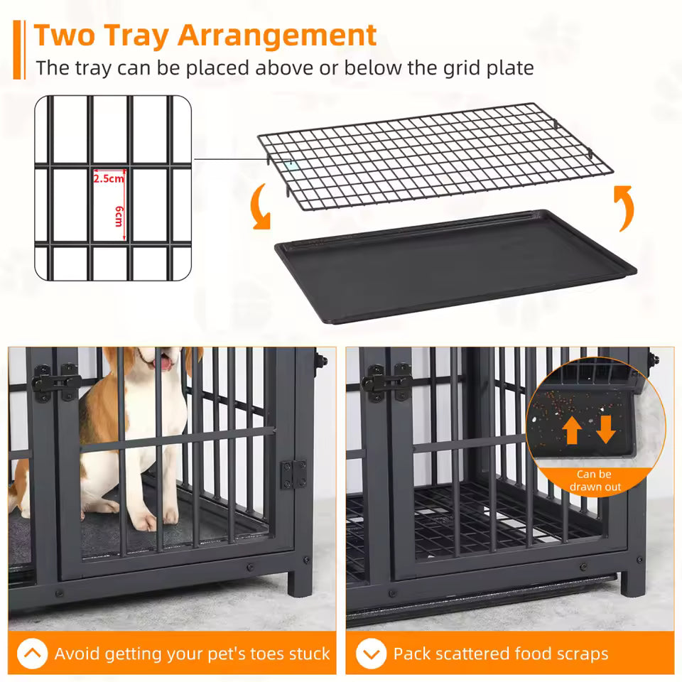 Multifunctional Removable Tray - Our wooden dog crate has a multifunctional removable tray compared to others, you can slide it beneath bottom to catch any dirt and food residue, easy to clean without any hassle and no need to move the heavy crate for clean, also, you can put the tray inside the crate and include a dog bed, reduces anxiety and soothe dogs when they stand on the wire bottom