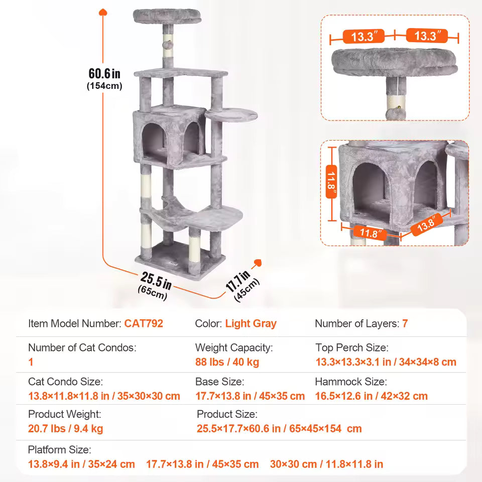 Cat Tree Tower with Condo, Hammock & Scratching Posts β Multi-Level Activity Center for Indoor Cats
