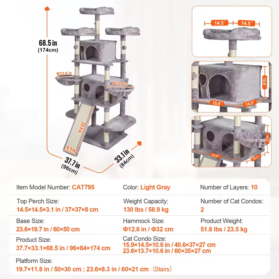 Safety is our priority. This cat scratching tree is made from P2-grade particle board, ensuring Sturdiness without odor. The large base and reinforced sisal posts further enhance stability. Anti-tip straps can beΒ Installed to the wall for extra security.