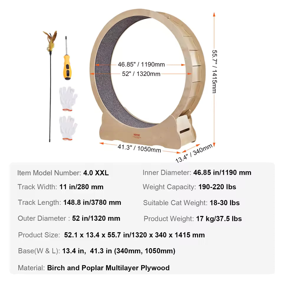 Equipped with a silent-running wheel and built-in noise-reducing holes, this cat exercise wheel lowers sound levels by 10–20%, ensuring a quiet and calming environment. It allows your pet to stay active without disrupting your household—promoting peaceful coexistence for both your family and your feline companion.