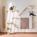 Wall-Mounted Cat Climbing Shelf with Four-Step Staircase and Sisal-Covered Scratching Post, Cat Tree Tower Platform for Jumping, Pet Play Furniture